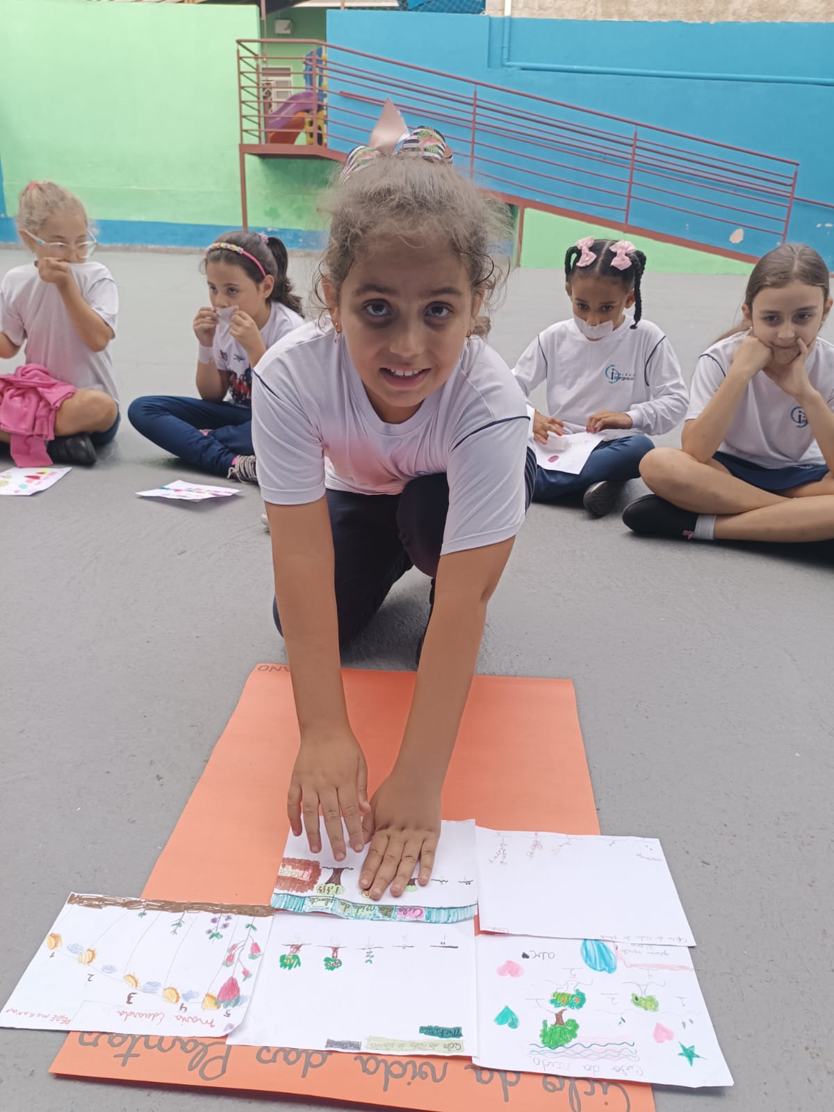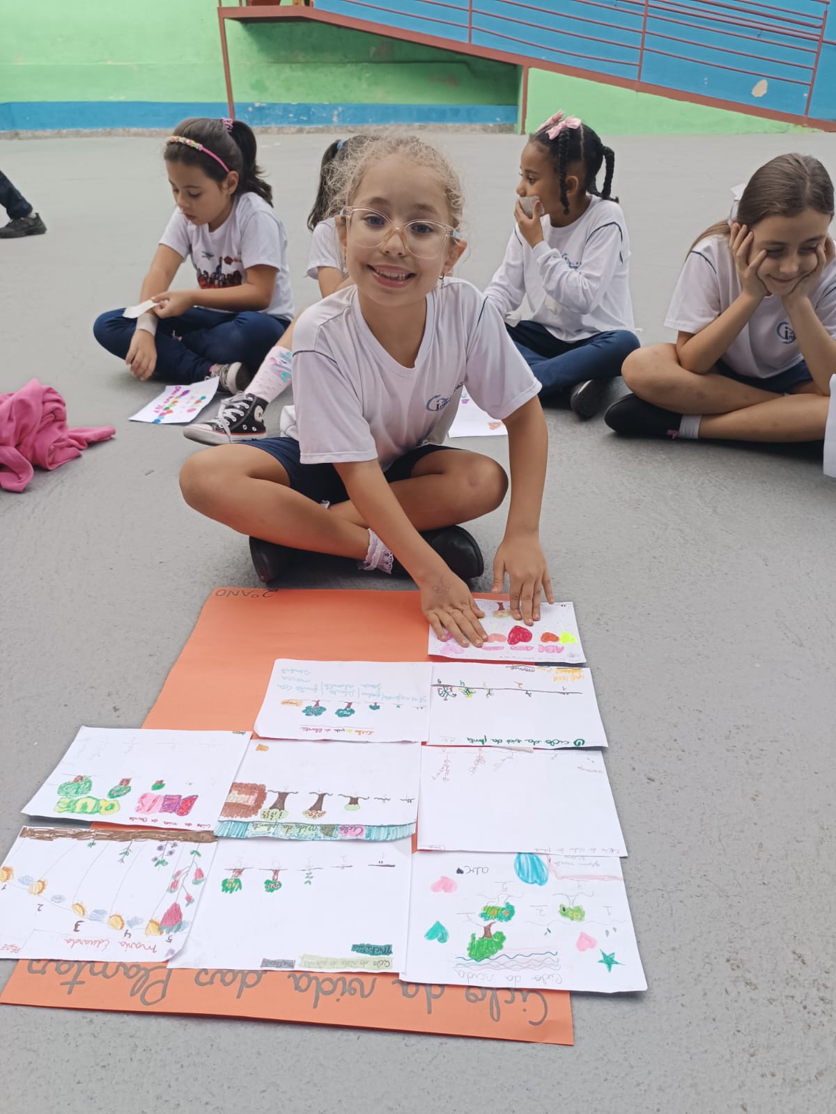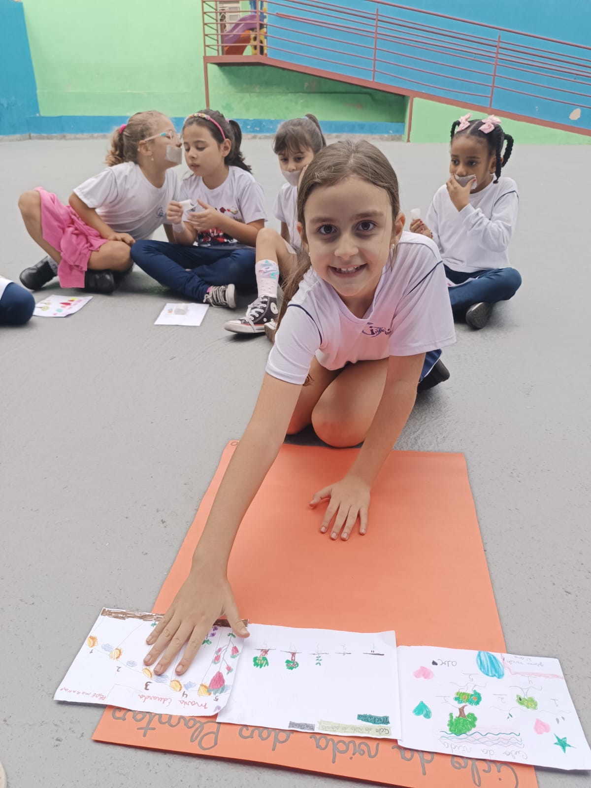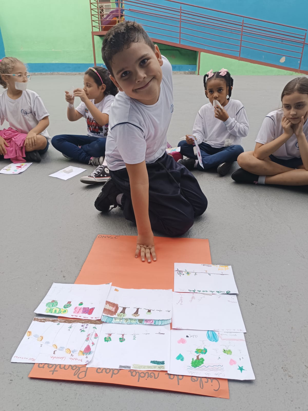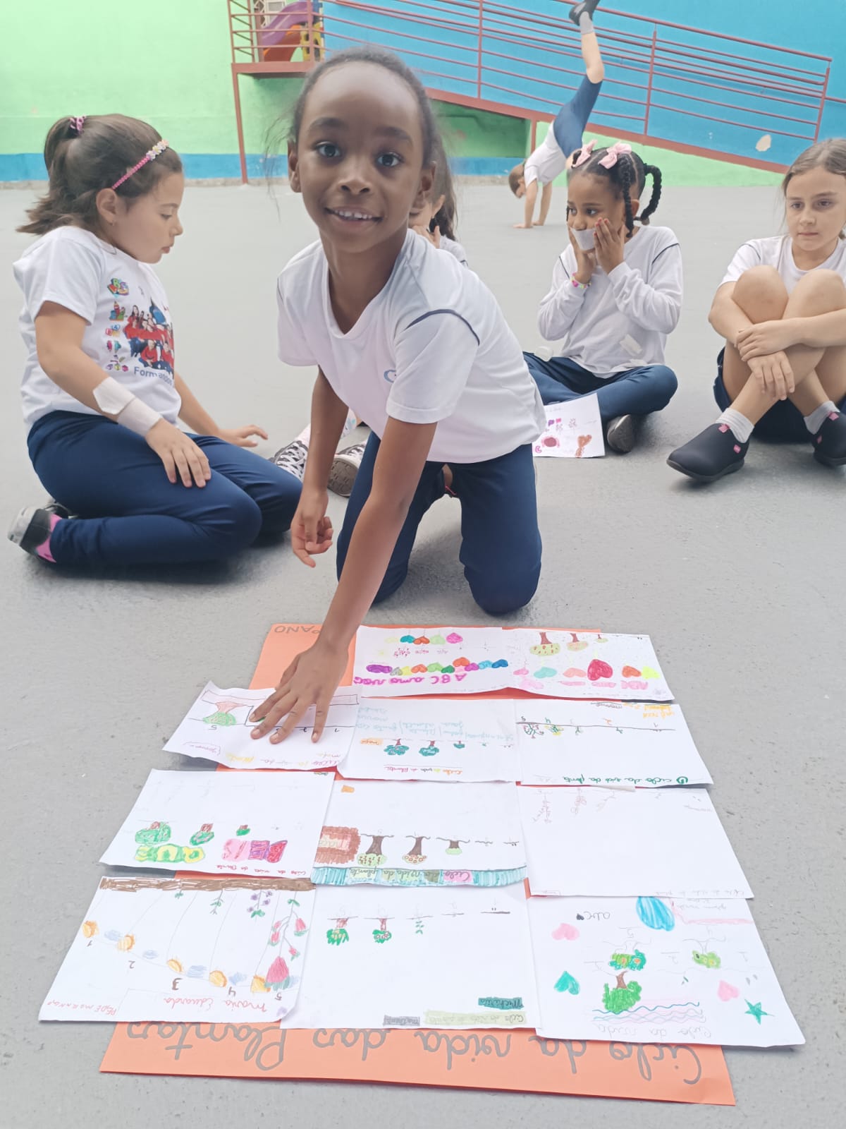 Cada um escolheu um elemento no processo de plantio da semente: brotar, planta adulta, planta adulta com flor e planta adulta com fruto que protege a semente.