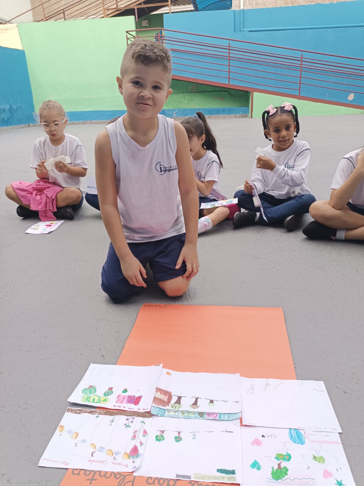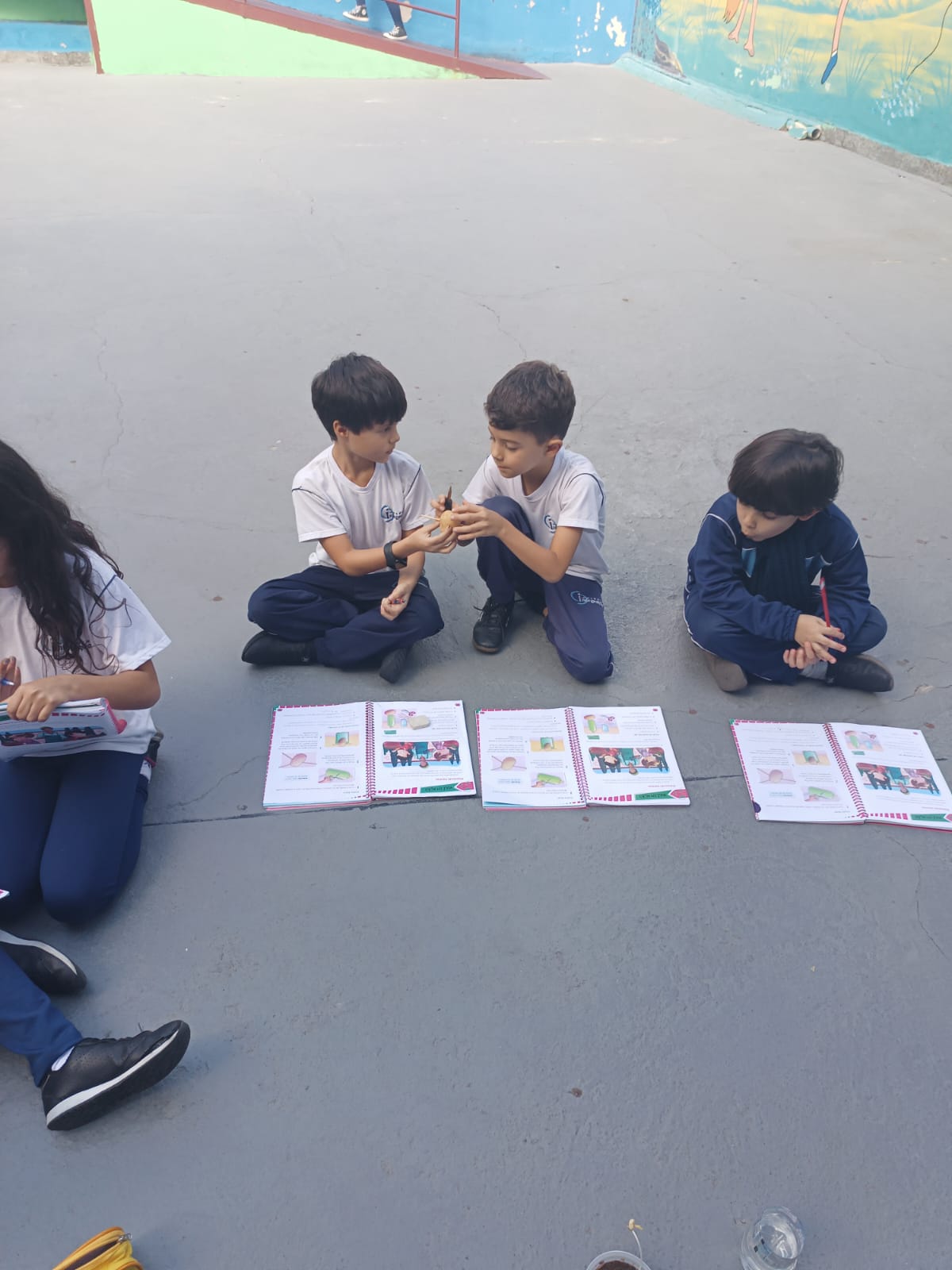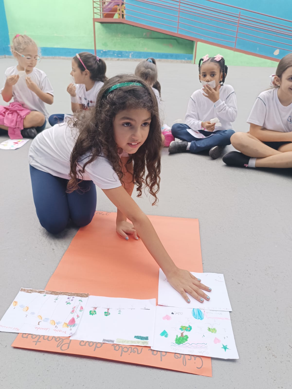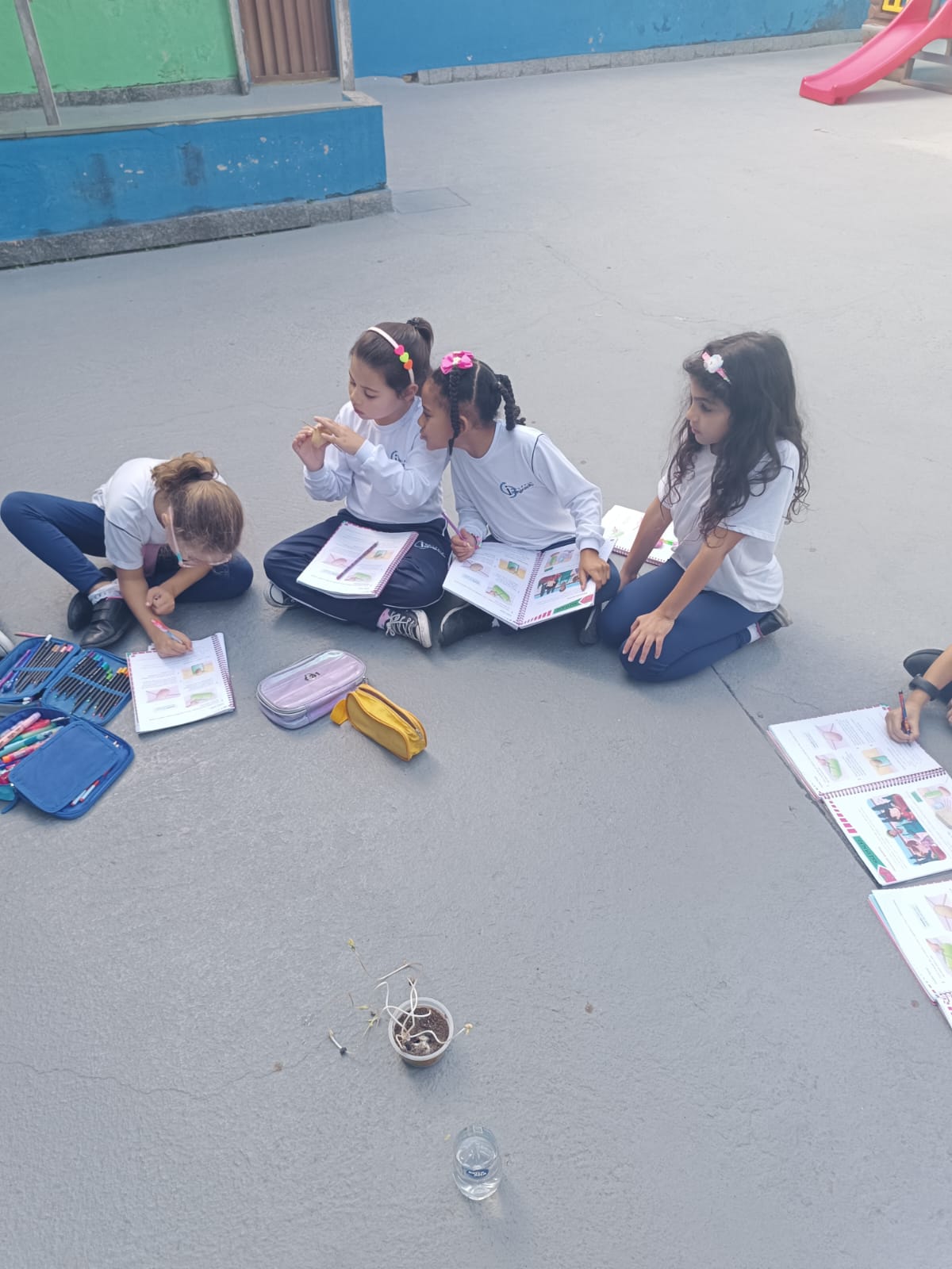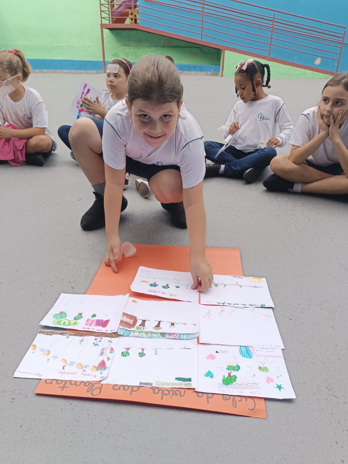 Cada um escolheu um elemento no processo de plantio da semente: brotar, planta adulta, planta adulta com flor e planta adulta com fruto que protege a semente.