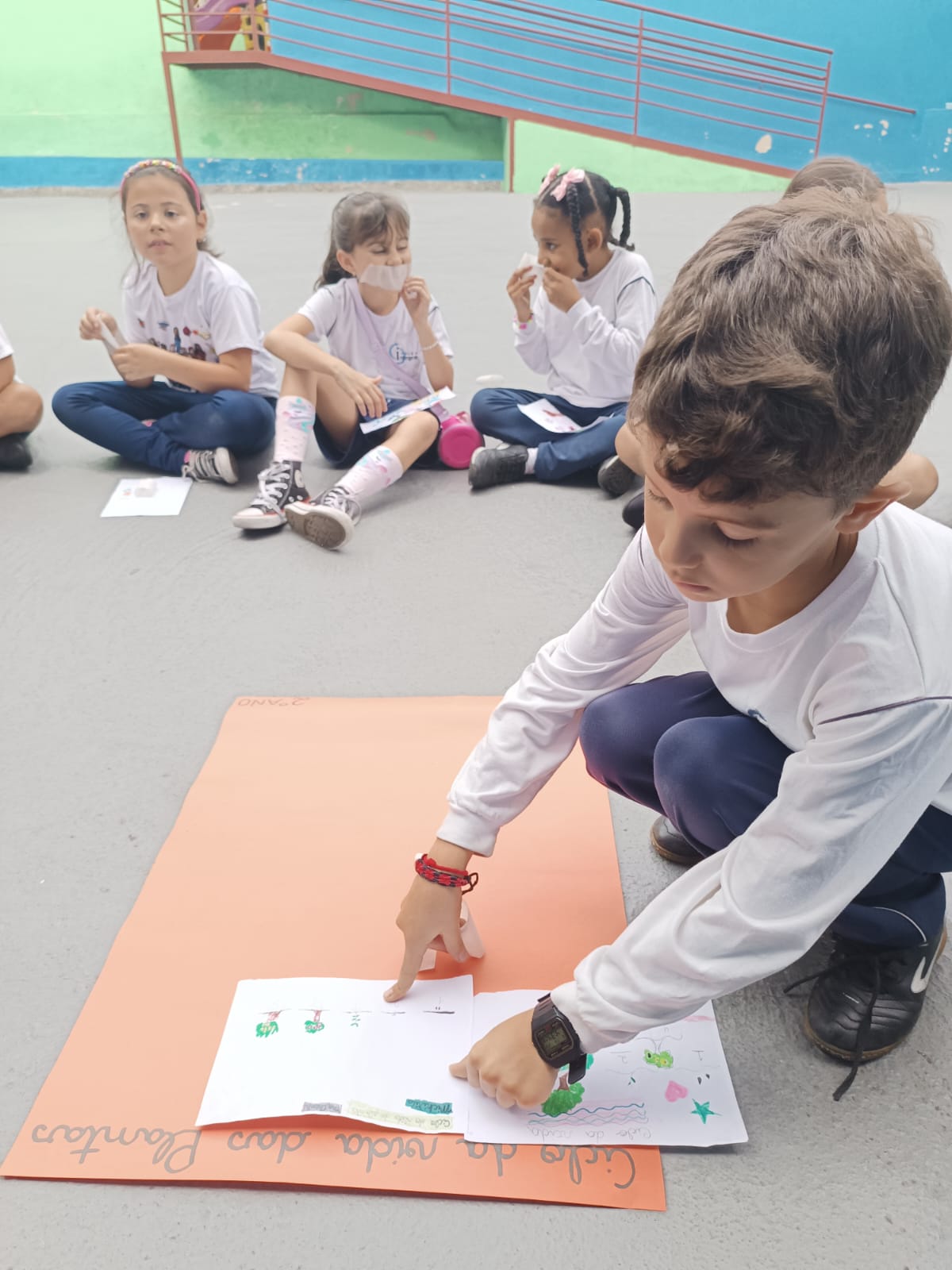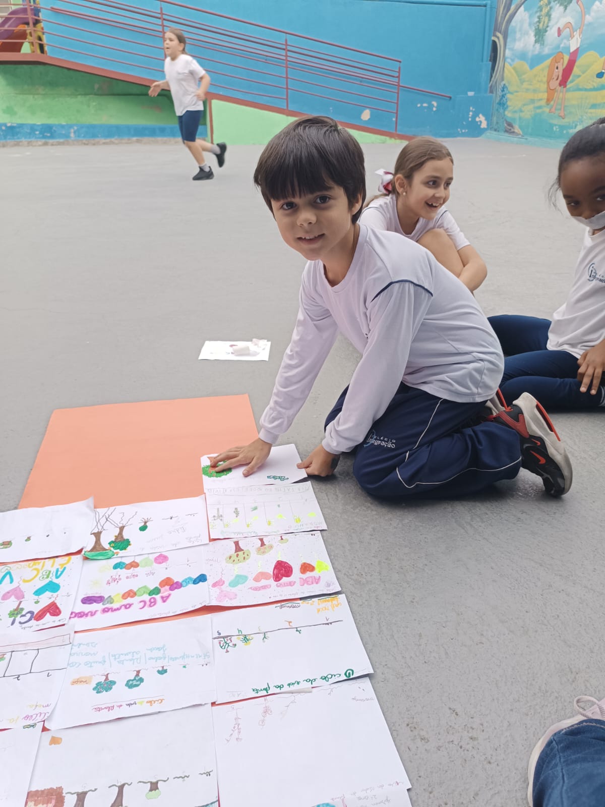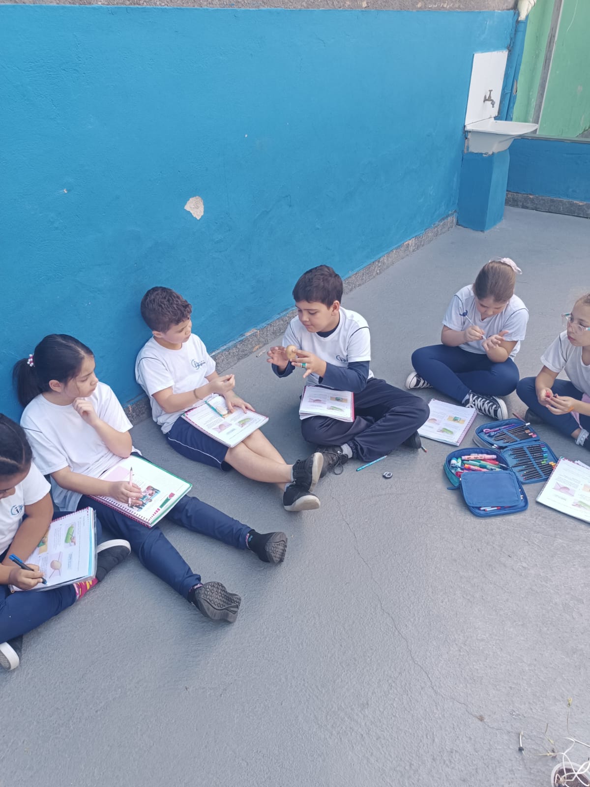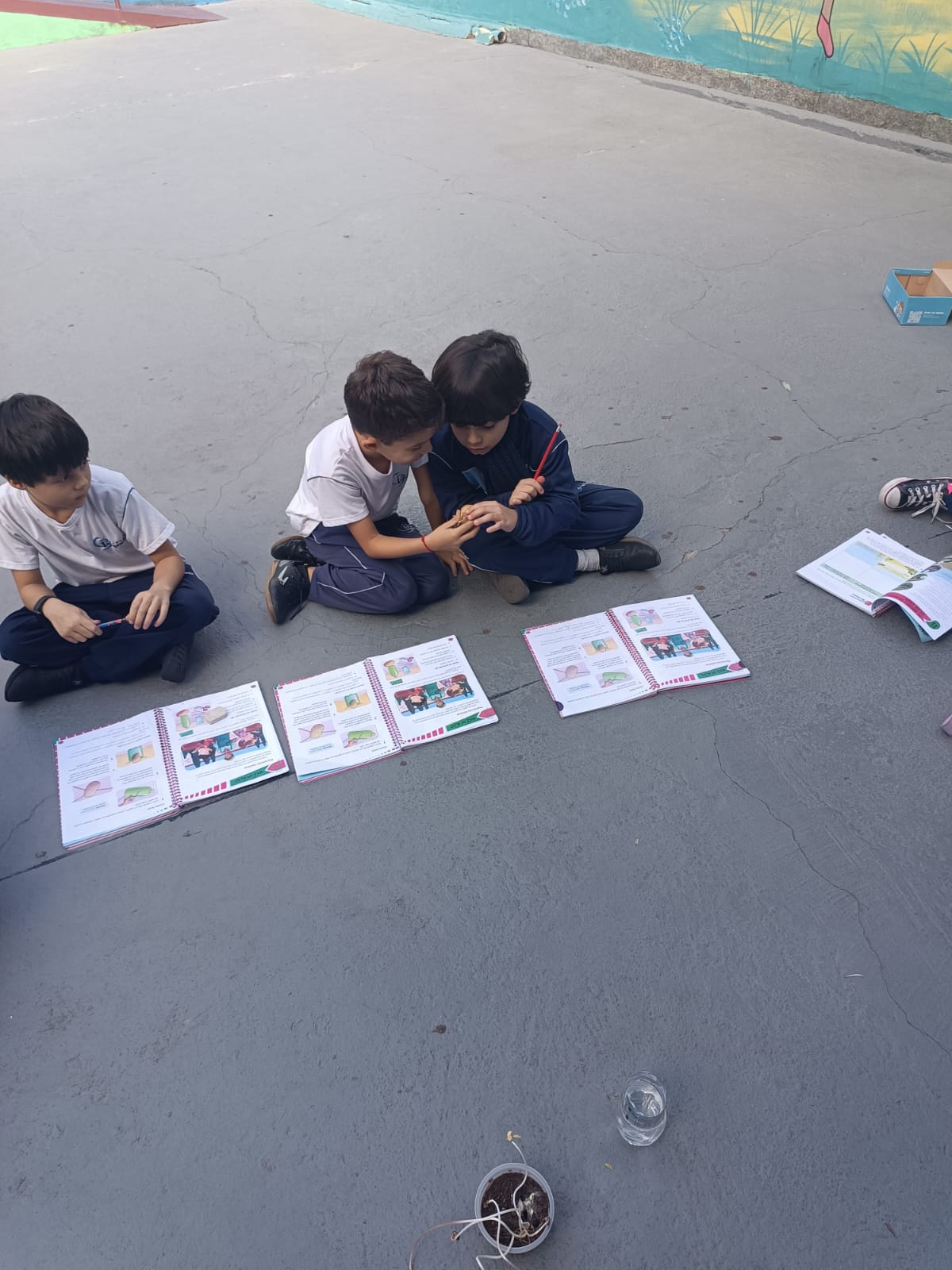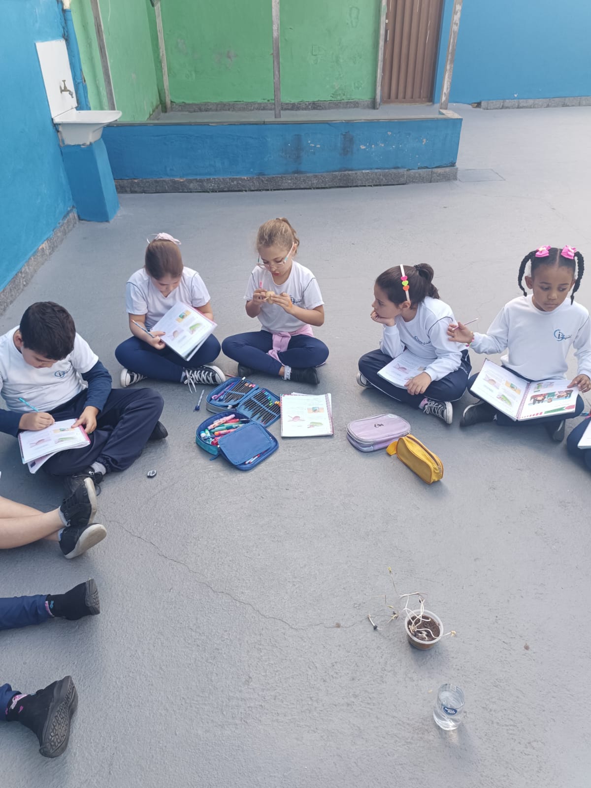 Cada um escolheu um elemento no processo de plantio da semente: brotar, planta adulta, planta adulta com flor e planta adulta com fruto que protege a semente.
