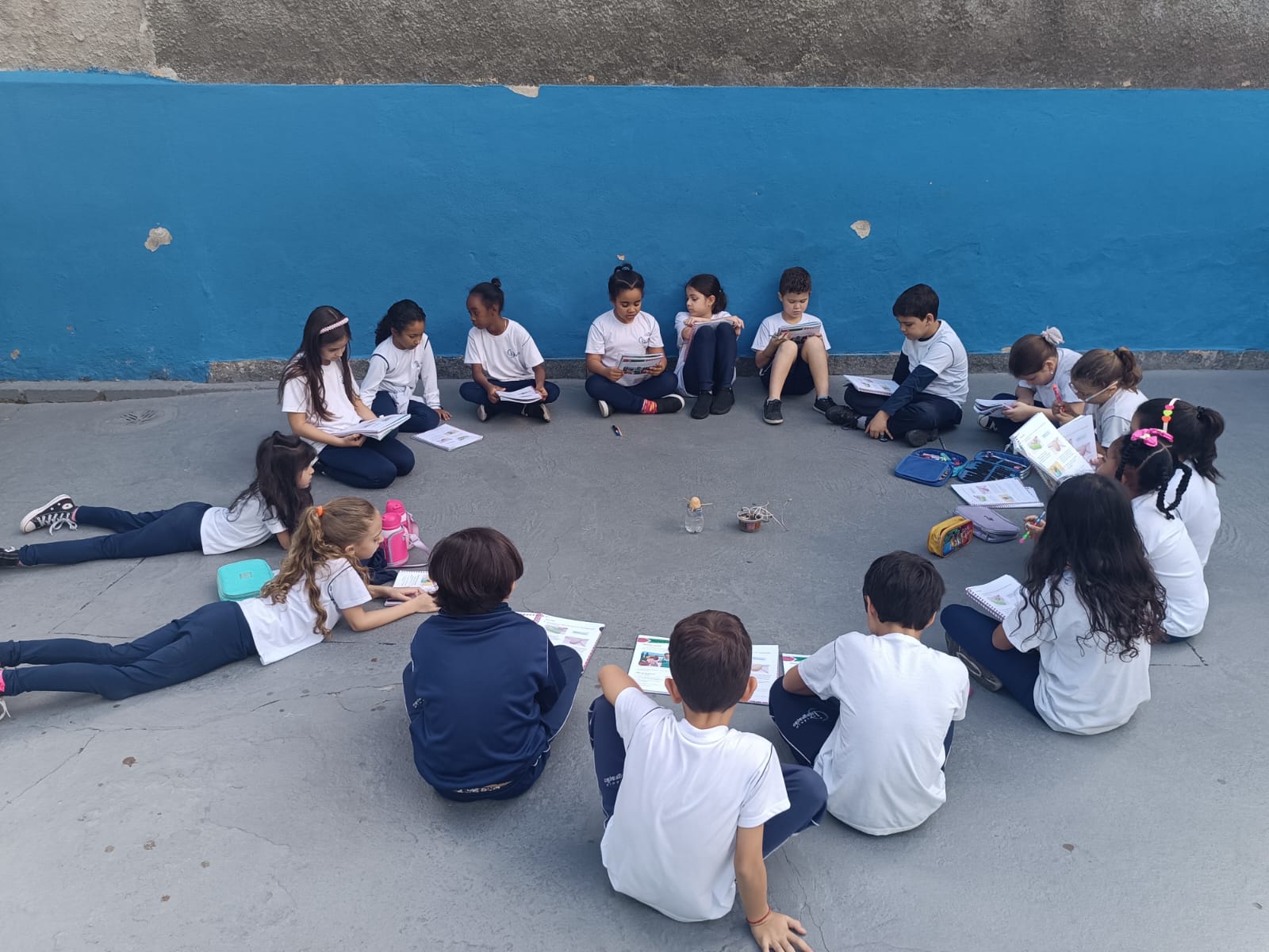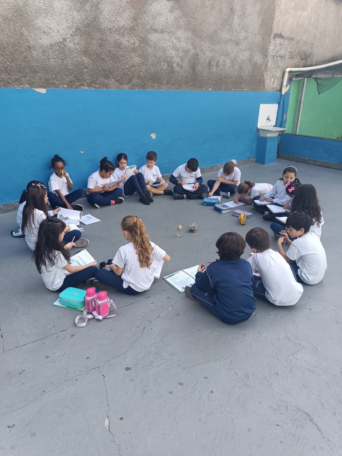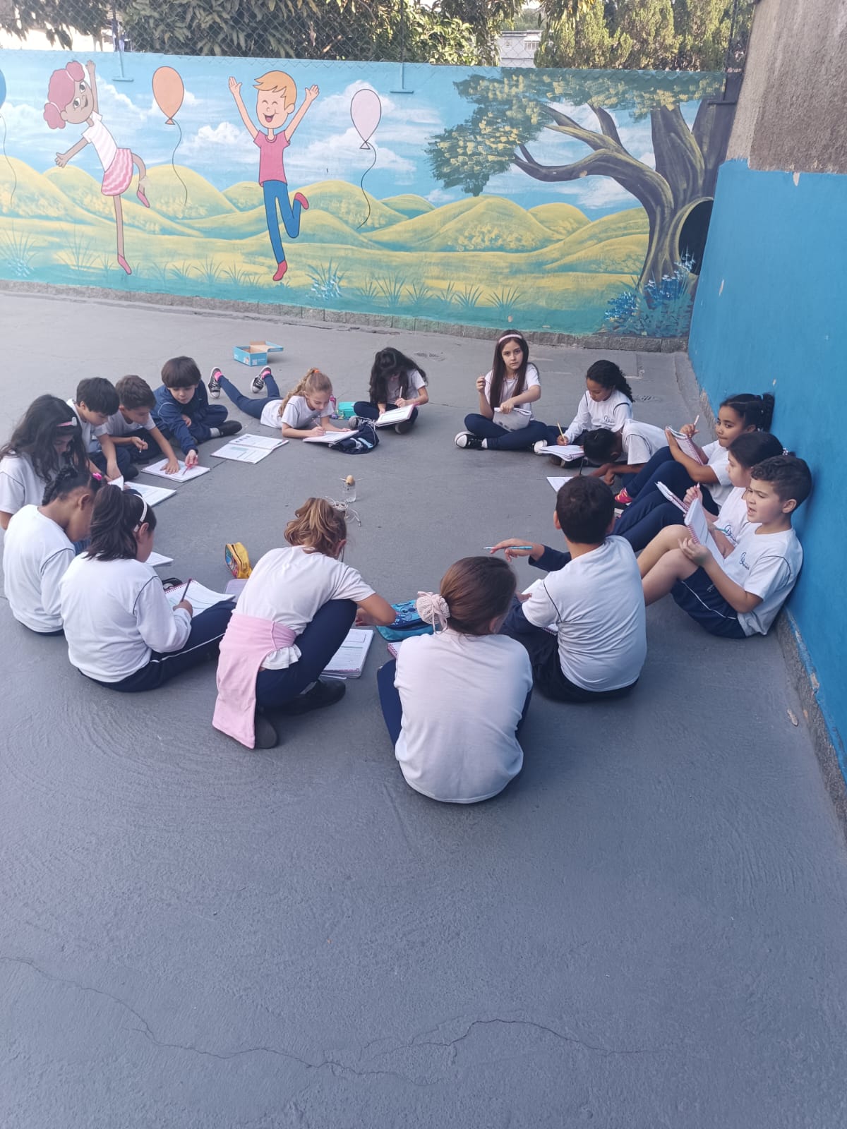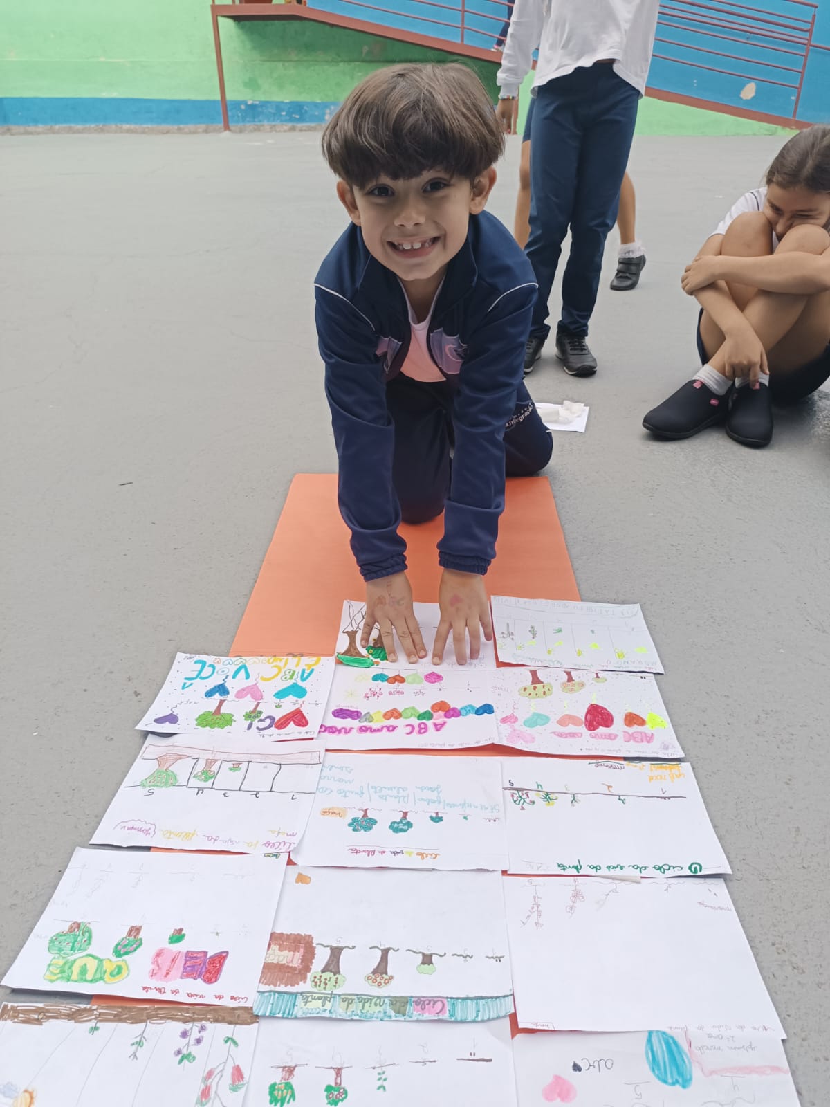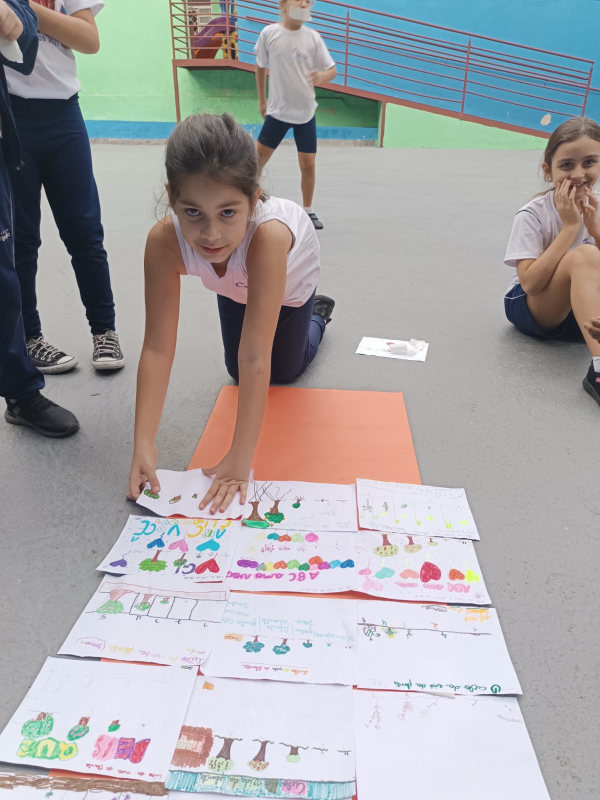 Cada um escolheu um elemento no processo de plantio da semente: brotar, planta adulta, planta adulta com flor e planta adulta com fruto que protege a semente.