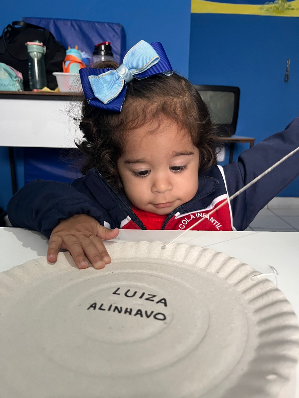 Traçado com o carrinho e alinhavo no pratinho de papelão.