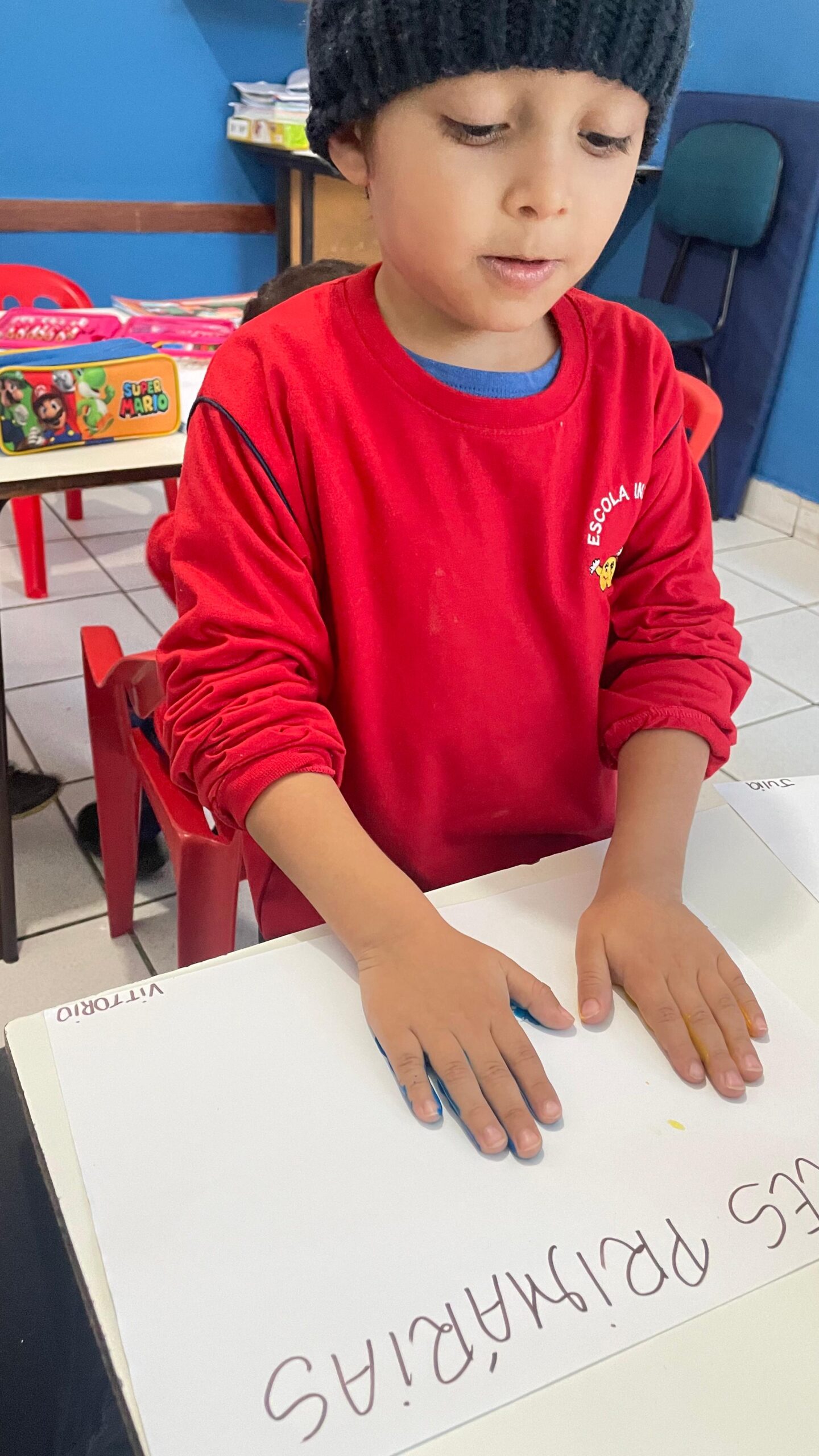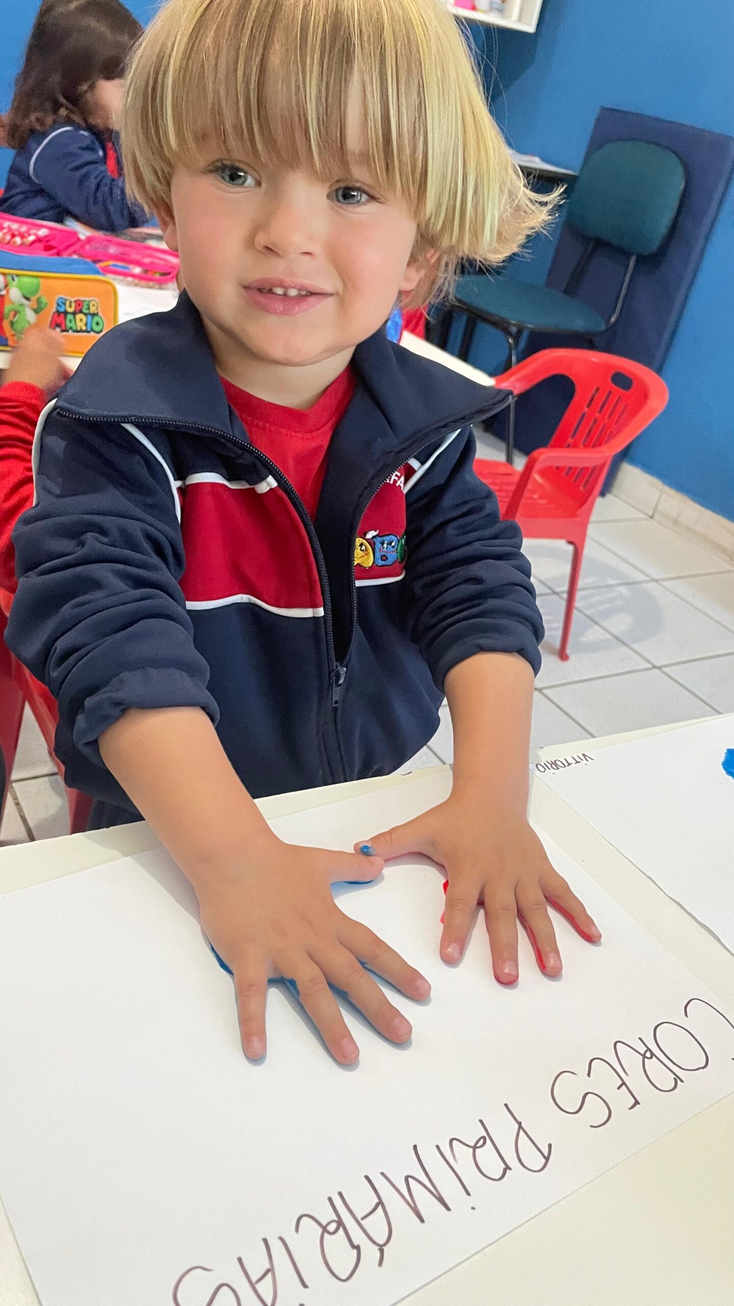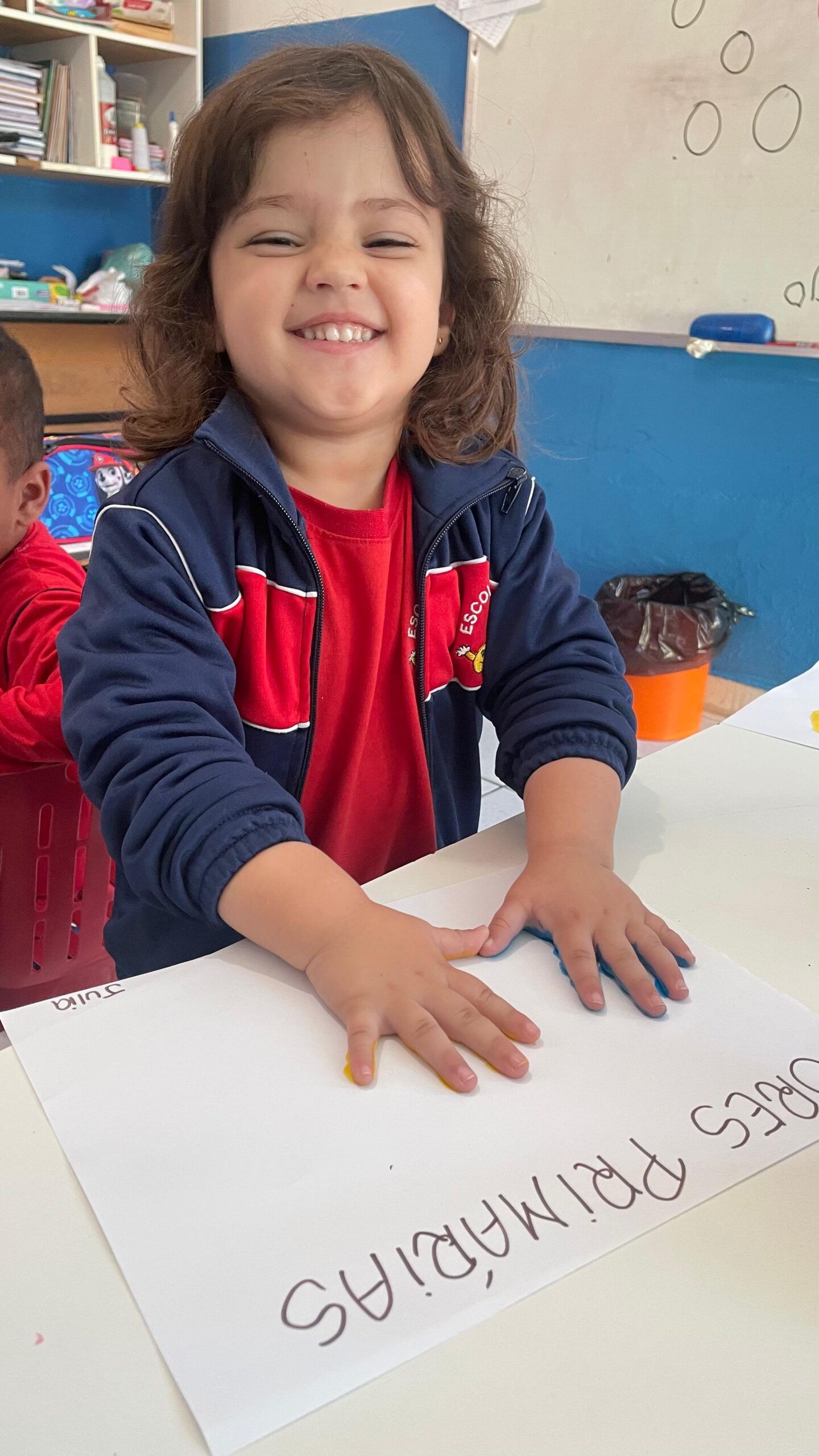 Os alunos do Maternal III aprenderam as Cores Primárias através da pintura nas mãos.