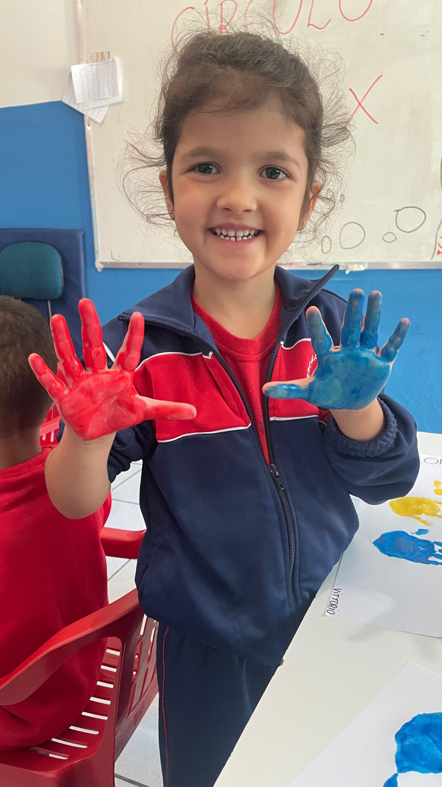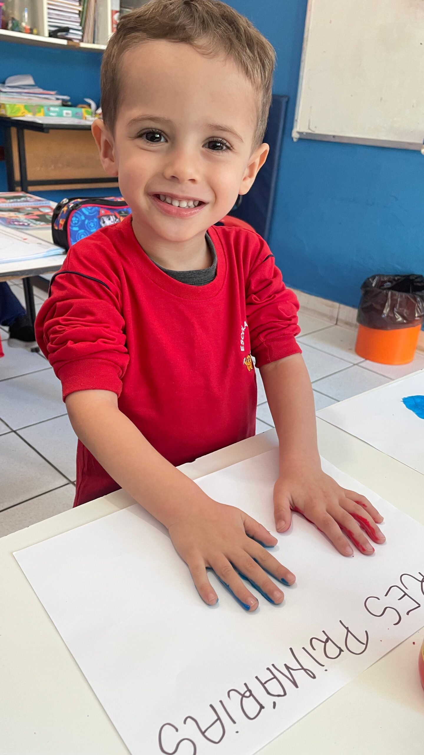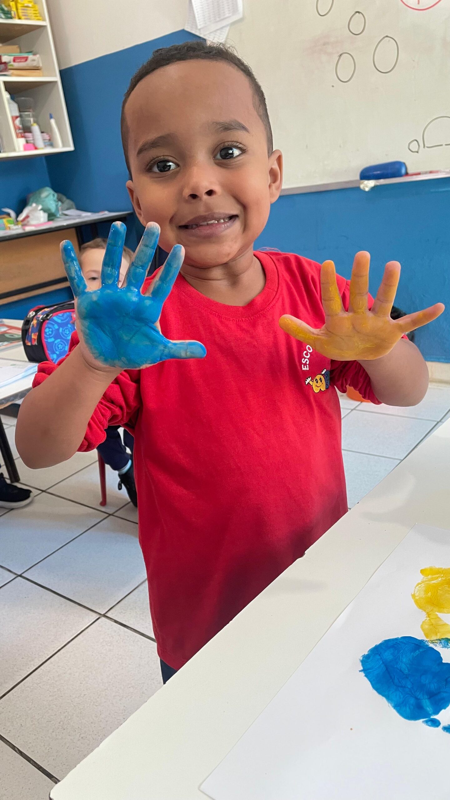 Os alunos do Maternal III aprenderam as Cores Primárias através da pintura nas mãos.